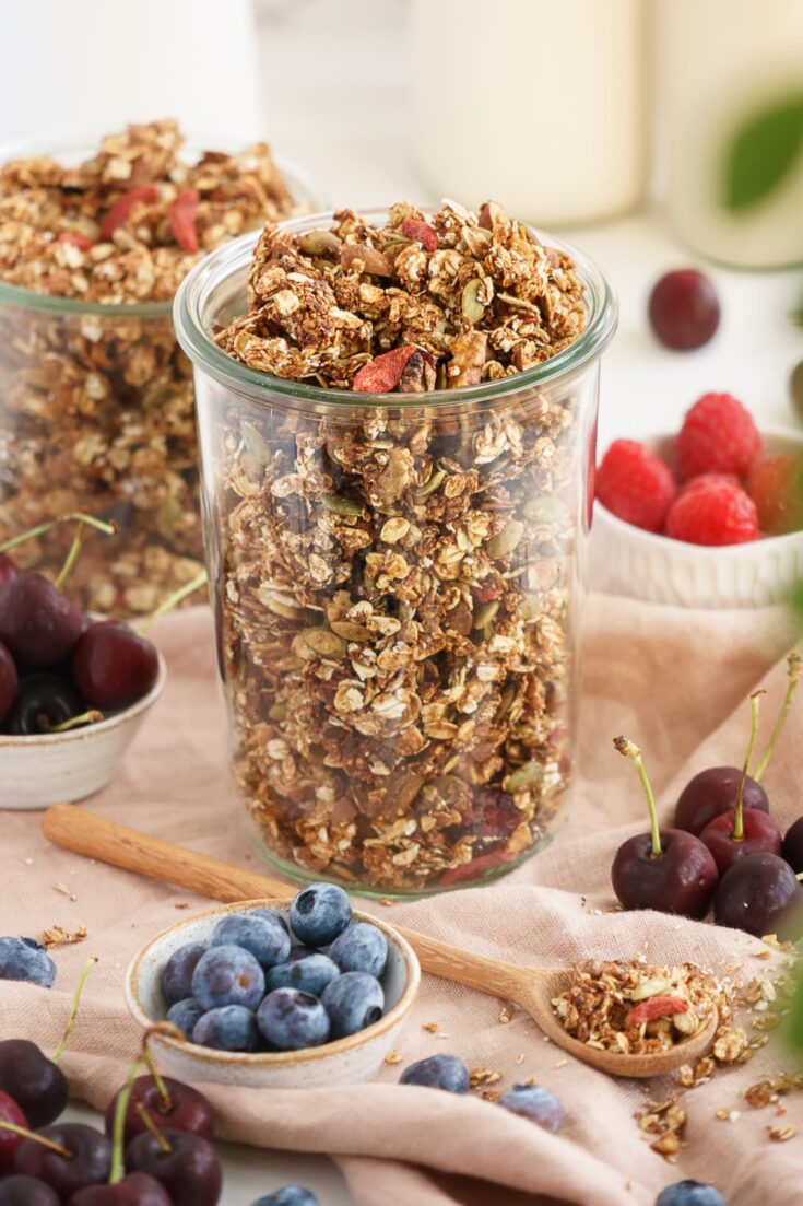 There’s no need to settle for sugar-stuffed dry cereal with this oil-free granola in town!