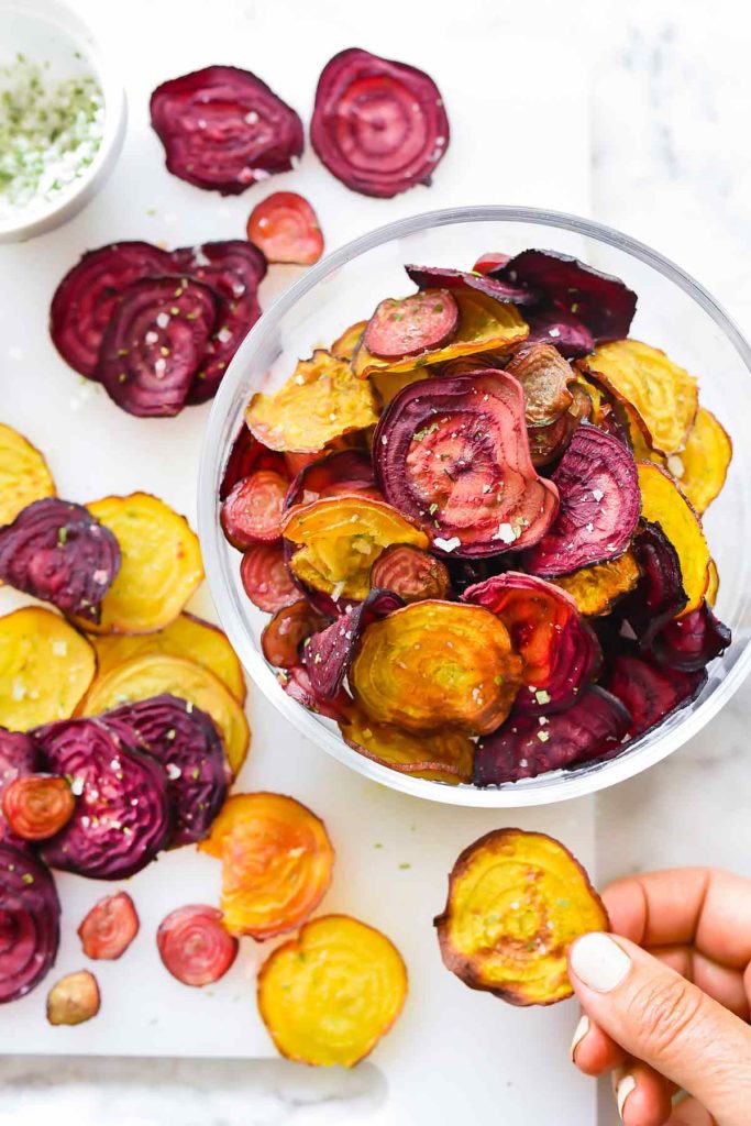 I can’t get enough of these crisp beet chips, as they’re the perfect mixture of sweet and salty flavors.