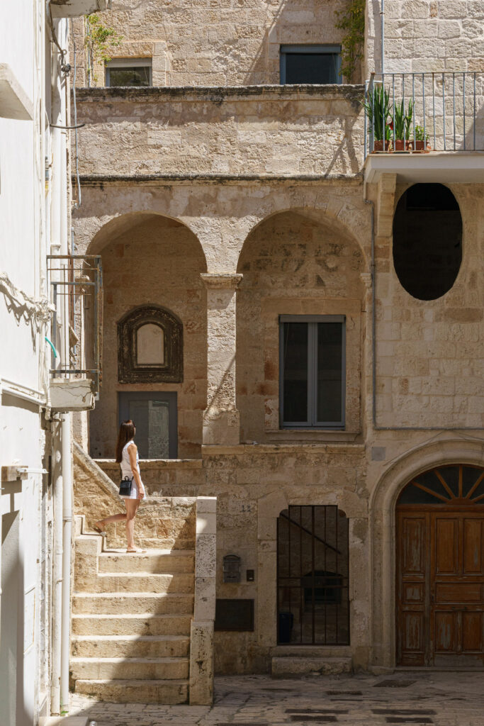 You’ll want to wear sturdy walking shoes if you’re visiting Ostuni. This place is packed with stairs and slopes (especially if you’re planning to visit the Centro Storico). This means it’s not the most accessible city in the world if you’re wearing heels or slip-on pumps.